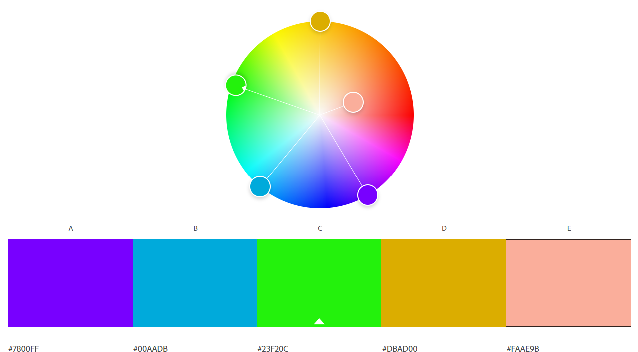 One of the five selected colors is the main color. We see this color called “Base color” with a larger circle than the colors dragged with the mouse in the color selection in the shape of a cake. Other colors are chosen according to this color. Hue, like those with harmony between saturation values. Then, one of the colors can be selected as the base color.